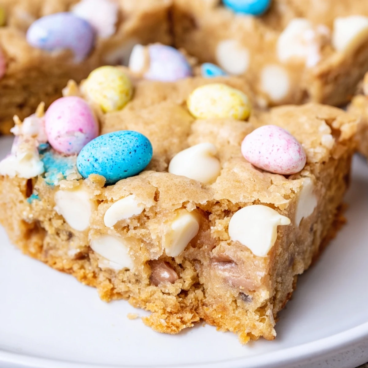 The pastel speckled eggs caught my eye in the grocery aisle, their crinkly foil wrappers catching fluorescent lights. I'd forgotten how Easter candy has a way of making everything feel like a celebration, even a random Tuesday. These blondies became my way of stretching that holiday feeling into something that lasts longer than a single chocolate egg.