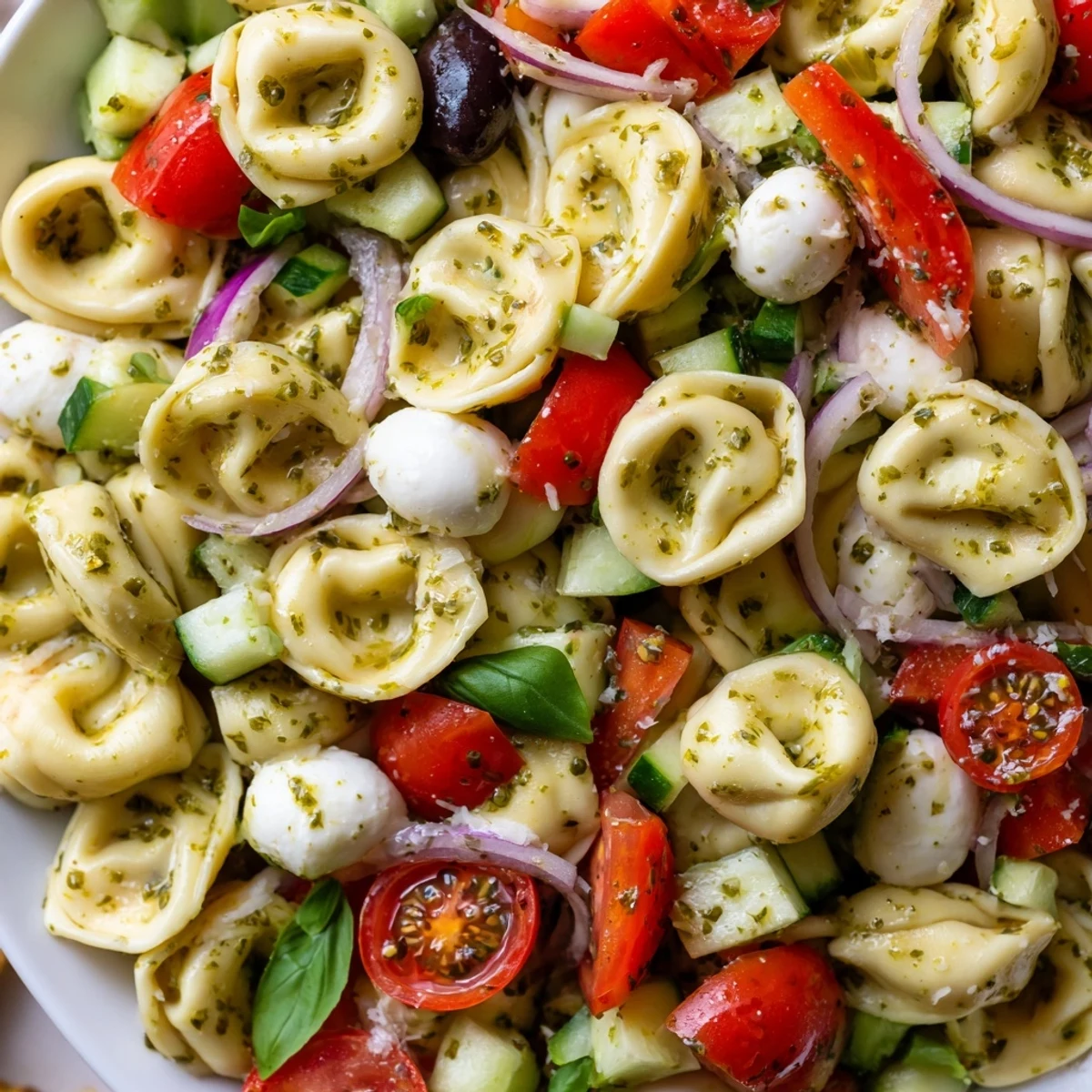 A classic Italian vinaigrette with olive oil, red wine vinegar, garlic, and dried oregano complements the tortellini perfectly. You can also use pesto, a light balsamic dressing, or creamy Italian. Avoid heavy cream-based dressings that may coat the pasta too heavily.